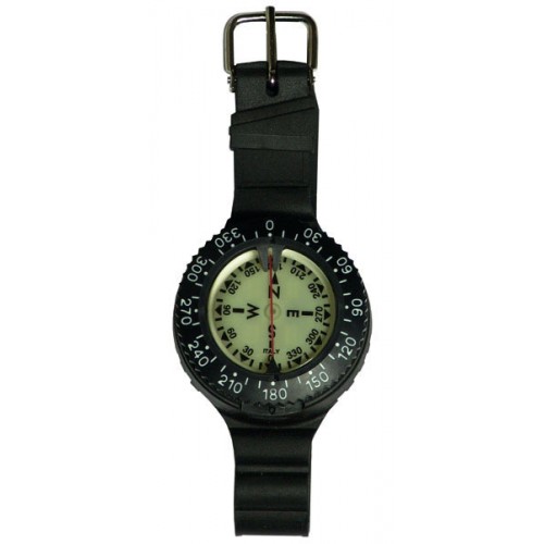 SPHERICAL WHRIST DIVE COMPASS, 360° ROTATING BEZEL, LUMINISCENT DIAL, SIDE READING, RUBBER WHRIST STRAP